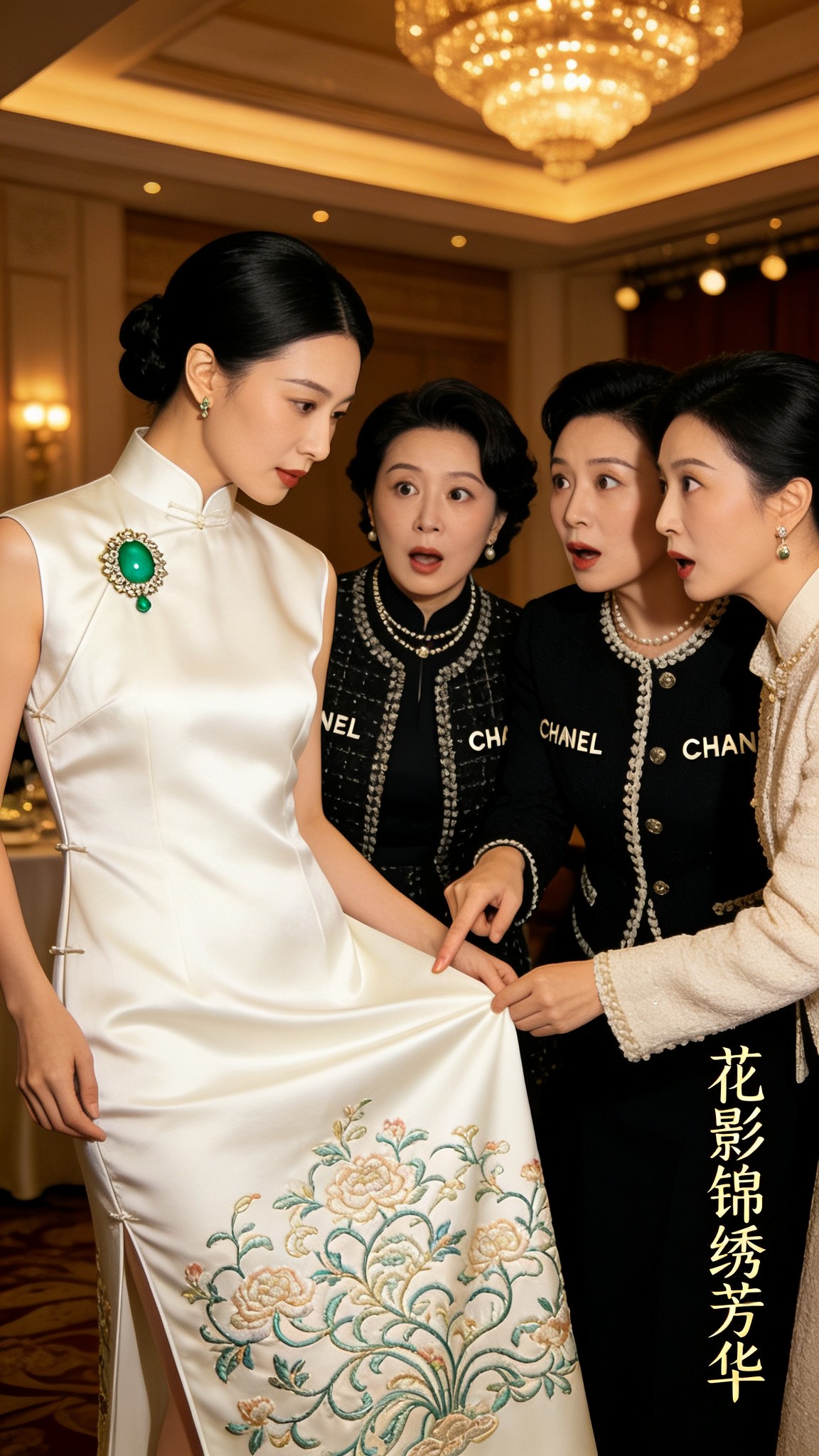 刚走进宴会厅,就被三位平时只穿香奈儿高定的阔太围住——她们没问我包包是不是限量款,反而盯着我旗袍衣摆上的缠枝莲纹样,追问:“这是哪家的高定?看着比爱马仕的丝巾还精致。”