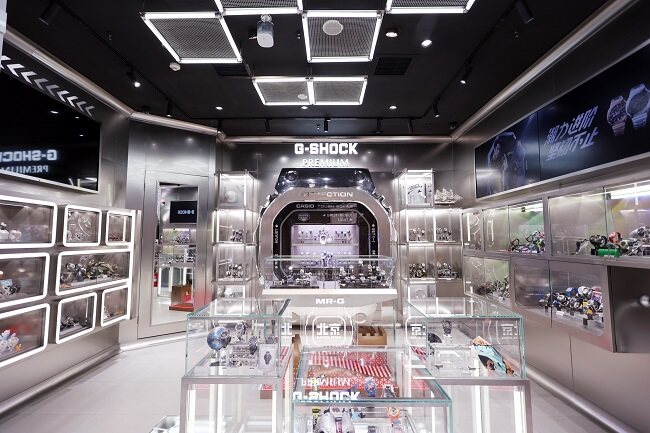 全新升级的G-SHOCK STORE采用冷峻的金属色搭配未来感十足的透明色作为店铺的主色调,身处历史悠久的帝都,却仿佛从未来穿越而来。店铺大门以G-SHOCK表头造型震撼呈现,穿越一扇穿越之门引领未来科技和潮流,代表着其带领潮流玩家探索未来的蓬勃野心。通过独树一帜的潮流风格以及众多高能腕表,不断挑战潮流边界。